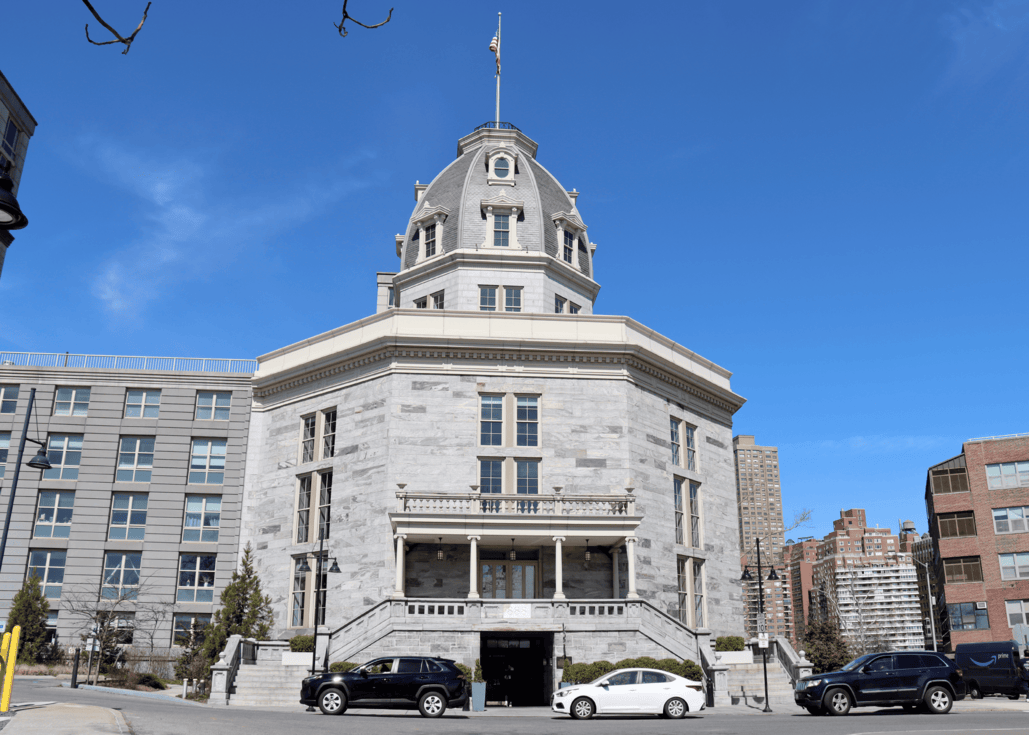 A distinctive eight-sided tower from the 1839 New York Lunatic Asylum.